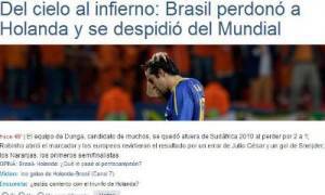“L’arancia meccanica ha distrutto il sogno della ‘Hexa”’, cioè il sesto titolo ai mondiali, afferma il sito Futebolinterior, mentre la Gazeta Esportiva riprende le parole del portiere Julio Cesar, che ha ammesso l’errore sul primo gol. Anche JB on line cita il ‘mea culpa’ del portiere del Brasile e dell’Inter ma si chiede: “E le colpe degli altri?”. Il Diario di Pernambuco sottolinea a questo proposito “i due errori fatti da Felipe Melo, che hanno permesso la svolta della partita e la vittoria olandese”. Quello di oggi è “la fine di un sogno”, conclude il Diario.