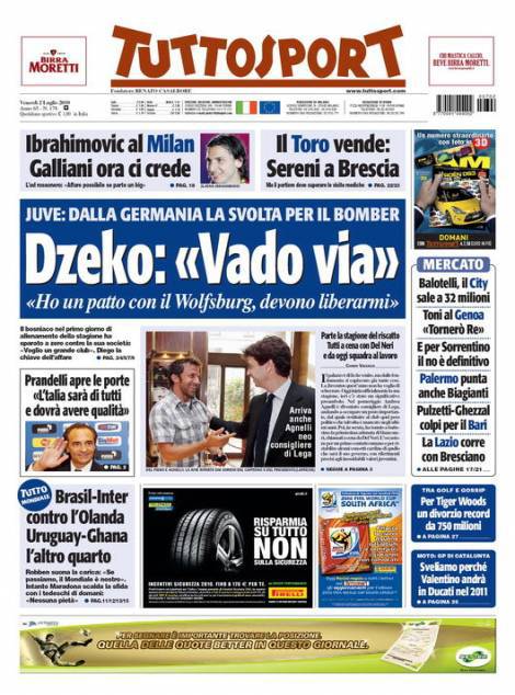 Sul quotidiano torinese Tuttosport si parla del futuro di Edin Dzeko, centravanti bosniaco del Wolfsburg. Il giocatore, corteggiato con insistenza dalla Juventus e non solo, ha dichiarato che la società tedesca deve liberarlo in virtù di un patto stipulato lo scorso anno quando sul calciatore bosniaco c’era il profondo interessamento del Milan di Berlusconi.