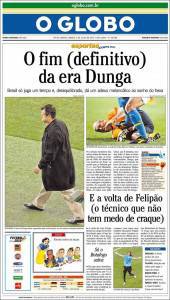 Il quotidiano brasiliano O Globo parla della clamorosa eliminazione del Brasile ai quarti di finale dei Mondiali sudafricani per mano dell’Olanda di Sneijder. Il Brasile era passato in vantaggio con Robinho ma nel secondo tempo la squadra verdeoro ha subito la rimonta degli orange. Espulso Felipe Melo autore di un secondo tempo disastroso e sommerso dalle critiche dei brasiliani.