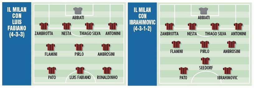 MILANO – Secondo quanto riportano le ultime voci di calciomercato, il Milan ora sarebbe interessato di più all’attaccante svedese Zlatan Ibrahimovic che al bomber brasiliano Luis Fabiano. Il numero 10 del Siviglia infatti ha dichiarato: «Ci sarà tempo per pensare e parlare di tutto. Il presidente Del Nido e Monchi (il diesse del Siviglia, ndr) sanno perfettamente quali sono i miei desideri. Ho parlato con loro dicendo che mi piacerebbe restare a Siviglia. Si è detto che avrei espresso il desiderio di giocare in un altro club, però ho già parlato col presidente dicendogli che non è vero. Non ho mai dichiarato nulla del genere. Adesso ci siederemo a conversare e faremo le nostre valutazioni». Proprio per questo ora si punta l’attaccante del Barcellona che all’inizio era vlutato ben 68 milioni di euro ed ora le richieste per il cartellino è scesa addirittura a 36 milioni di euro. Il Corriere dello Sport ha ipotizzato le due formazioni del Milan con da una parte O’Fabouloso e dall’altra il numero 9 del Barça.