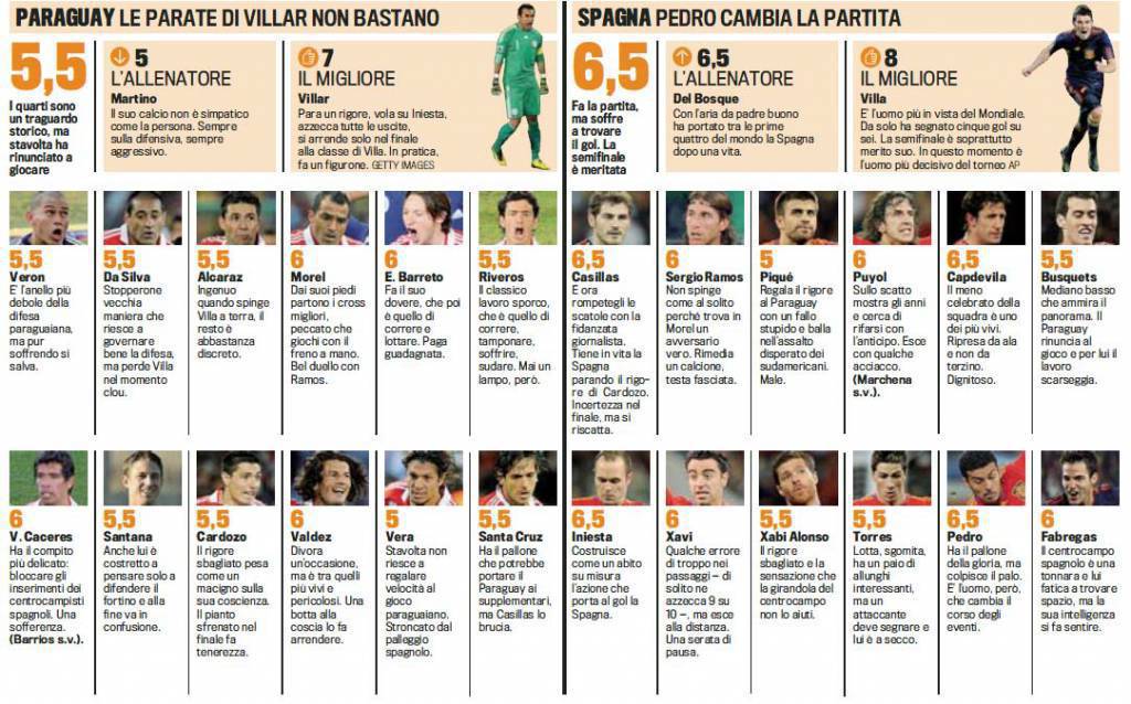 JOHANNESBURG (Sudafrica) – Ieri è stato un giorno storico per la Spagna e tutti gli spagnoli, infatti le Furie Rosse per la prima volta nella loro storia sono riusciti ad accedere alle semifinali di un Mondiale vincendo e giocando una bella partita contro il Paraguay solamente al minuto 83. Ci ha pensato il neo attaccante del Barcellona David Villa ad insaccare la rete della vittoria spagnola finale.