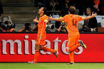 JOHANNESBURG (Sudafrica) – E’ terminato 1-1 il primo tempo tra Uruguay ed Olanda per la prima semifinale del mondiale sudafricano. Decidono fino ad ora due autentiche prodezze di Van Bronckhorst e Forlan. Il terzino olandese ha sbloccato il risultato con un tiro da 30 metri che si è andato ad insaccare sotto l’incrocio dei pali, con Muslera incolpevole. Ha invece delle colpe Stekelenburg, sul pareggio di Forlan che colpisce anche lui da fuori con un tiro potente ma centrale trovando impreparato il numero uno dei tulipani.