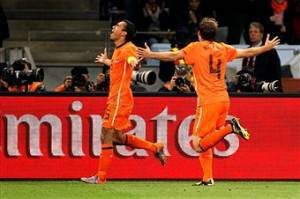 JOHANNESBURG (Sudafrica) – L’Olanda batte l’Uruguay 3-2 nella semifinale del mondiale sudafricano ed è la prima finalista della competizione sudafricana. Gara dalle mille emozioni dopo un primo tempo contraddistinto dalle grandi reti di Giovanni Van Bronckhorst e Forlan con la partecipazione dei due portieri. Nella ripresa ripartono forte i sudamericani, ma alla fine esce la qualità dei tulipani che con un uno-due firmato Sneijder-Robben porta il risultato sul 3-1. Nel finale c’è spazio per il gol di Pereira che accorcia le distanze ed infiamma gli ultimi attimi della partita. Ora domenica l’Olanda attenderà la vincente di Spagna-Germania per una finale tutta europea.