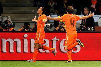 JOHANNESBURG (Sudafrica) – L’Olanda batte l’Uruguay 3-2 nella semifinale del mondiale sudafricano ed è la prima finalista della competizione sudafricana. Gara dalle mille emozioni dopo un primo tempo contraddistinto dalle grandi reti di Giovanni Van Bronckhorst e Forlan con la partecipazione dei due portieri. Nella ripresa ripartono forte i sudamericani, ma alla fine esce la qualità dei tulipani che con un uno-due firmato Sneijder-Robben porta il risultato sul 3-1. Nel finale c’è spazio per il gol di Pereira che accorcia le distanze ed infiamma gli ultimi attimi della partita. Ora domenica l’Olanda attenderà la vincente di Spagna-Germania per una finale tutta europea.