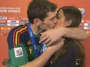 JOHANNESBURG (Sudafrica) – Bacio in diretta per il portiere e capitano della Spagna, che a margine di un’intervista per la tv spagnola ha baciato la giornalista nonchè sua fidanzata.