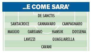 NAPOLI – Con l’arrivo imminente di Cavani, l’attacco del Napoli potrà contare su un tridente d’attacco composto da Lavezzi, l’uruguagio e Quagliarella, un mix di velocità, imprevedibilità e fantasia, con Hamsik spostato nella linea dei centrocampisti per aumentare il tasso tecnico della mediana azzurra. Ecco la foto del Corriere dello Sport sul nuovo Napoli.