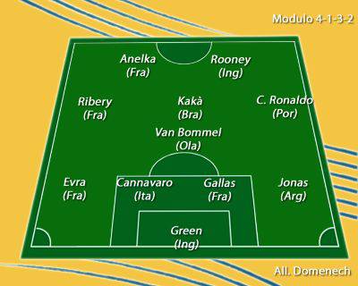 LONDRA (Inghilterra) – Il quotidiano britannico ‘The Sun’ ci ha spesso abituati a stravaganti e pungenti classifiche e col termine del Mondiale in Sudafrica, non poteva esimersi dal pubblicare la formazione delle grandi stelle che hanno deluso nell’ultima competizione intercontinentale. In porta, naturalmente, il povero portiere inglese Green difeso dai francesi Gallas ed Evra, l’argentino Jonas e il nostro ‘ex muro di Berlino’ Fabio Cannavaro. Centrocampo di enorme spessore tecnico composto dal vicecampione del mondo Van Bommel, i palloni d’oro Kakà e Cristiano Ronaldo e la stella del Bayern Monaco, Frank Ribery. In attacco non poteva mancare Wayne Rooney affiancato ‘dall’esiliato’ Anelka. In panchina? Che domande: monsieur Raymond Domenech!