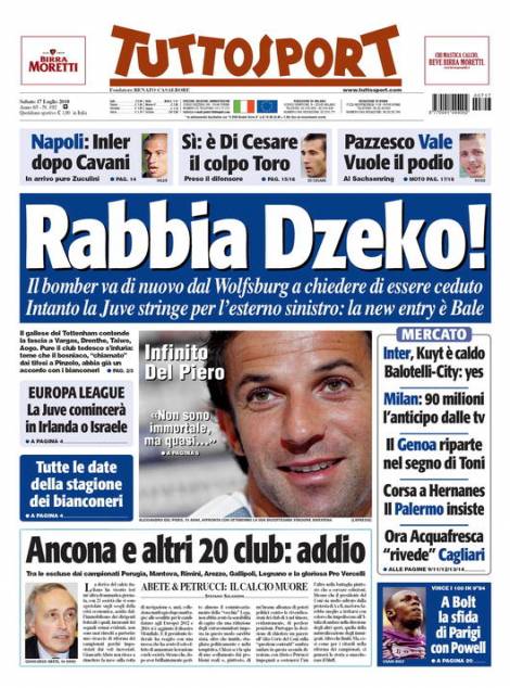 Il quotidiano torinese Tuttosport parla del calciomercato Juventus riparlando del caso Dzeko. Il bomber del Wolfsburg ha chiesto ed ottenuto un incontro con i dirigenti tedeschi in cui ha espresso il desiderio di essere ceduto ad un club italiano. Sulle tracce del centravanti bosniaco non c’è solo la Juventus ma anche il Milan che già dallo scorso anno ha nel mirino il giocatore.