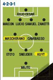 MILANO – Rafa Benitez ha già in mente la sua Inter. Il tecnico spagnolo dovrebbe continuare con il 4-2-3-1 lasciando però maggior spazio d’inserimento a Cambiasso, per questo ha chiesto fortemente l’acquisto di Mascherano. Per il ruolo di esterno il favorito è sempre l’olandese Kuyt. Ecco la formazione di Benitez secondo la Gazzetta dello Sport.
