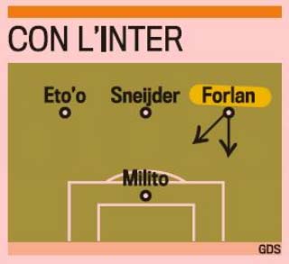 MILANO – L’Inter vuole fortemente Diego Forlan, 31enne giocatore uruguagio che tanto piace a Massimo Moratti. Come sostiene la Gazzetta dello Sport il giocatore dell’Atletico Madrid è ben visto anche da Rafa Benitez che avrebbe già in mente il modulo e lo schema adatto a far coesistere tutte le stelle nerazzurre. Ecco il grafico ripreso dal quotidiano rosa.