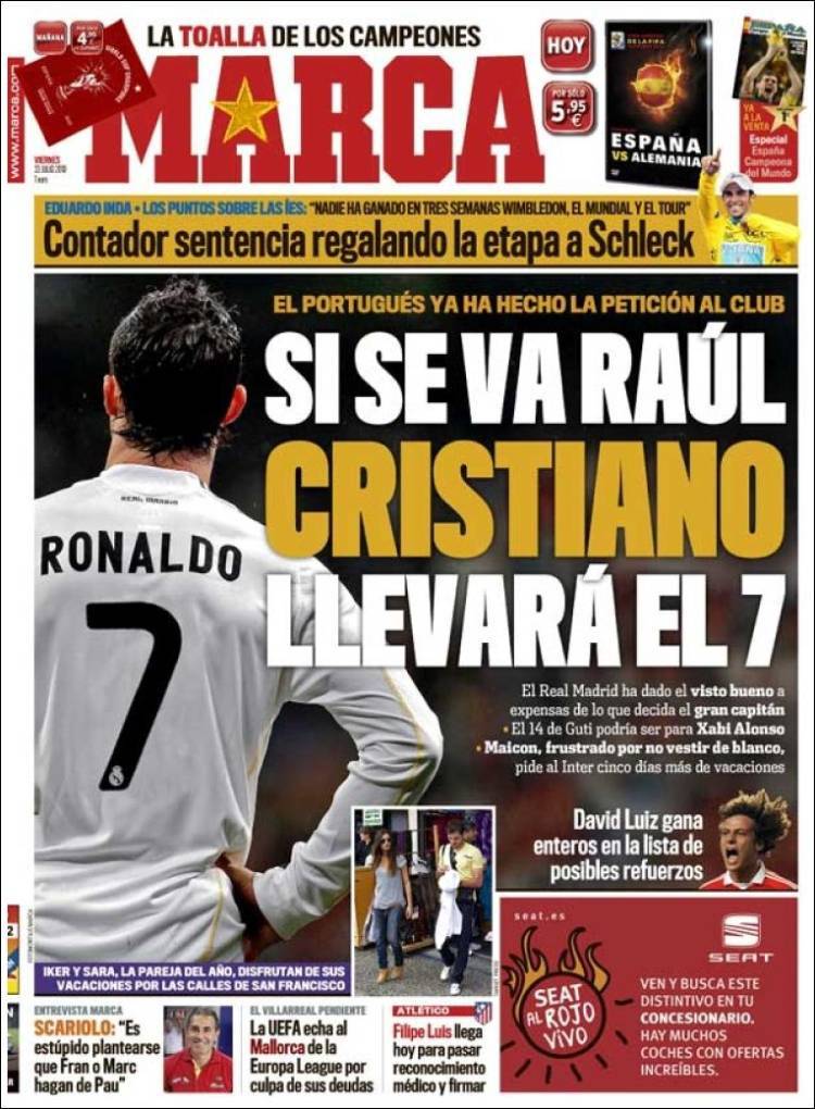 Sul quotidiano spagnolo Marca si parla nuovamente del caso Maicon con il brasiliano che ha voglia di approdare al Real Madrid per lavorare ancora una volta con il tecnico portoghese Josè Mourinho. Per questo il brasiliano ha chiesto ai nerazzurri di usufruire di altri cinque giorni in più di vacanze nella speranza che le due società possano trovare l’accordo per la cessione.