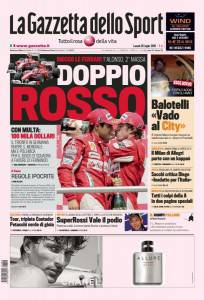 Sulla Gazzetta dello Sport si parla del calciomercato Inter ed in particolare del futuro di Mario Balotelli che oggi o domani diventerà ufficialmente un giocatore del Manchester City. Ieri il talento nerazzurro ha organizzato una festa d’addio con i suoi amici più stretti a cui ha rivelato di essere ormai un giocatore del City.