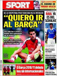 Anche l’altro quotidiano catalano Sport parla della trattativa tra Barcellona e Arsenal per portare il centrocampista spagnolo Cesc Fabregas a vestire la maglia blaugrana. Il giocatore ha più volte ripetuto al manager dei londinese Wenger la sua volontà di lasciare il club per andare a giocare in Spagna con la maglia del Barcellona.