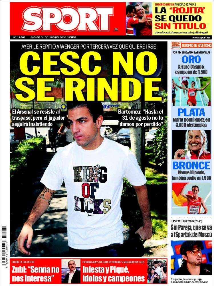 Sul quotidiano catalano Sport si parla della trattativa tra il Barcellona e l’Arsenal per Cesc Fabregas. I londinesi non intendono privarsi del neo Campione del Mondo, ma il giocatore ha più volte ribadito di voler tornare in Spagna e precisamente nel Barcellona. Ora c’è da convincere il manager dei “Gunners” Wenger.