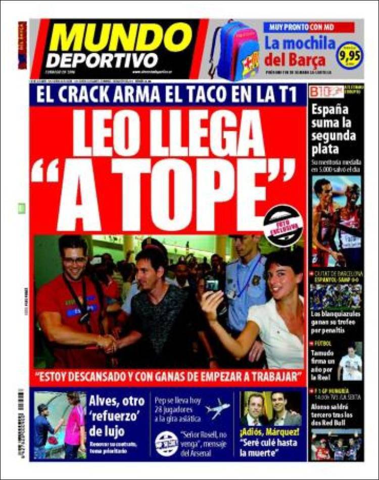 BARCELLONA (Spagna) – Ieri Lionel Messi si è riunito al Barcellona dopo la delusione ricevuta dal Mondiale attraverso l’eliminazioni da parte della Germania che agli ottavi ne ha rifilati 4 all’Argentina. Il giocatore si è detto carico e voglioso di ricominciare tanto da dichiarare: “Mi sono riposato ed ora sono pronto a ricominciare a lavorare”. Chissà quante volte in questa nuova stagione, la Pulce ci delizierà con le sue giocate…
