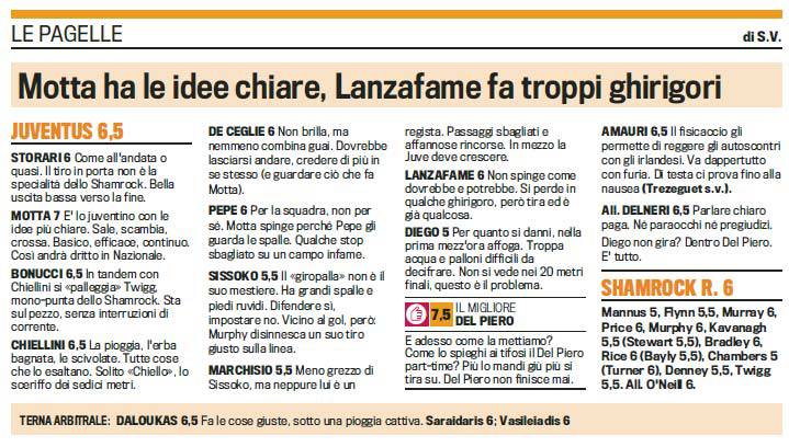 MODENA – Alessandro Del Piero lancia un chiaro messaggio al tecnico della Juventus Delneri. Il capitano bianconero è stato il migliore della serata secondo la Gazzetta dello Sport. Discorso inverso per Diego, il brasiliano ha deluso le aspettative complice anche un campo in pessime condizioni a causa del violento nubifragio. Ecco le pagelle del quotidiano rosa.
