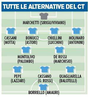 COVERCIANO – Secondo quanto riporta il Corriere dello Sport, con Cesare Prandelli alla guida della nostra Italia è pronto ad una rivoluzione, oltre alle convocazioni di Amauri e del tanto discusso Balotelli, il neo ct azzurro ha già in mente un modulo per fare giocare la propria formazione. L’italia giocherà con un 4-2-3-1, ecco il probabile 11 titolare della nazionale preso dal quotidiano romano.