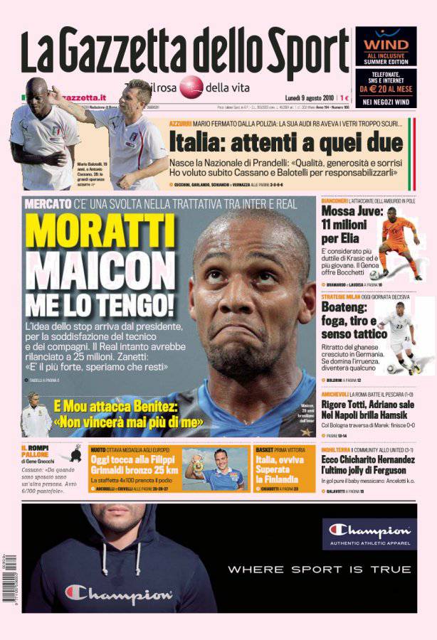 MILANO – Il presidente nerazzurro, Massimo Moratti, toglie dal mercato il terzino brasiliano Maicon, che fino a qualche tempo sembrava destinato al Real Madrid. I tifosi dell’Inter possono tirare un bel sospiro di sollievo.
