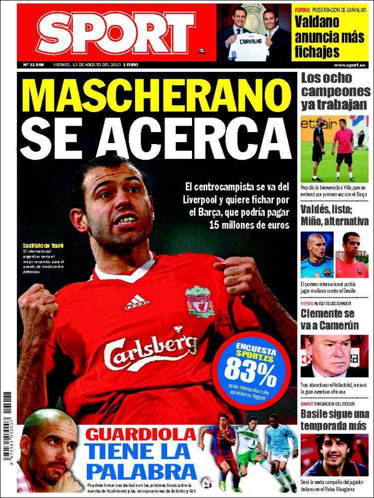 BARCELLONA (Spagna) – Il centrocampista argentino Javier Mascherano è pronto a lasciare il Liverpool per raggiungere il Barcellona, si parla di una cifra dell’affare che si aggir ai 15 milioni di euro che il club blaugrana verserà nelle casse dei Reds. Il giocatore era ormai in rotta con il suo club tanto da non essere più convocato nelle amichevoli, raggiunge quindi Barcellona che era il suo sogno da circa 4 anni stando da quanto dichiarato dal suo agente.