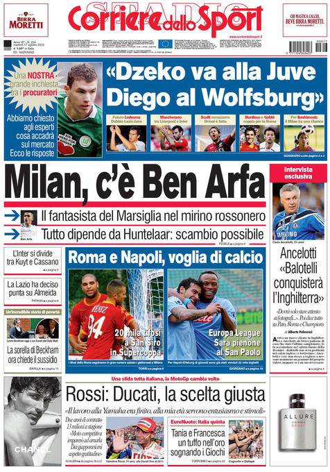 Il Corriere dello Sport parla del calciomercato Milan ed in particolare del francese Ben Arfa, talento del Marsiglia che potrebbe arrivare a Milano grazie ad uno scambio di mercato con Huntelaar. L’attaccante olandese piace al club francese.