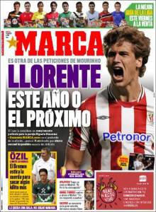 Sul quotidiano spagnolo Marca si parla del calciomercato del Real Madrid ed in particolare dell’acquisto di un attaccante invocato da Josè Mourinho. Il nome più gettonato è quello di Llorente dell’Atletico Bilbao, il calciatore piace allo Special One, ma il suo arrivo potrebbe slittare di una stagione.