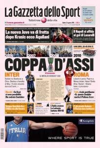 Sulla Gazzetta dello Sport si parla del match di Supercoppa Italiana in programma questa sera a San Siro tra Inter e Roma. Una sfida affascinante che metterà di fronte due squadre molto forti dal punto di vista tecnico.