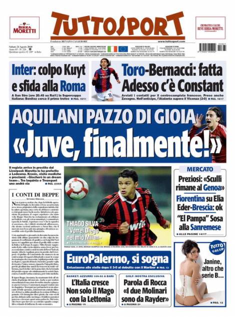 Sul quotidiano torinese Tuttosport si parla dell’arrivo alla Juventus di Alberto Aquilani. L’ex giocatore della Roma approda a Torino con la formula del prestito gratuito con diritto di riscatto. Il giocatore entusiasta della nuova destinazione.
