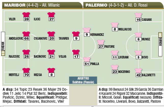 PALERMO – Ecco gli 11 di Delio Rossi per la sfida con il Maribor. Dopo il rotondo 3a0 dell’andata, per il Palermo non dovrebbe essere difficile passare il turno.
