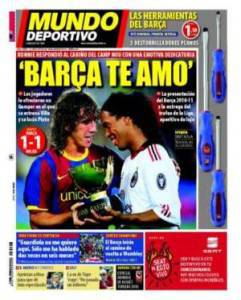 Mundo Deportivo: Barça Ti Amo 26/08/2010 di admin BARCELLONA – Ronaldinho è accolto come un eroe dal suo ex pubblico e il brasiliano ringrazia mandando segnali d’amore ai blaugrana. la redazione di www.calciomercatonews.com