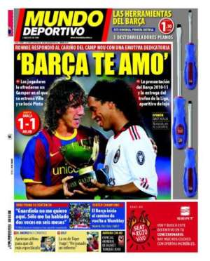 BARCELLONA – Ronaldinho è accolto come un eroe dal suo ex pubblico e il brasiliano ringrazia mandando segnali d’amore ai blaugrana.