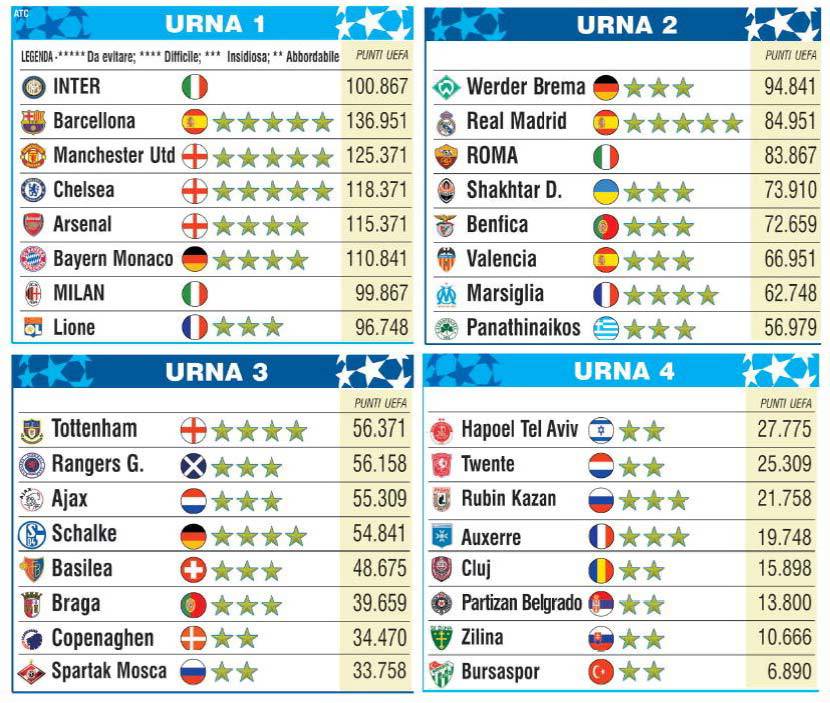 MONTECARLO – Si svolgeranno oggi alle 18 i sorteggi di Champions League. L’Inter potrebbe trovarsi di nuovo di fronte al suo passato. L’anno scorso toccò a Ibrahimovic, quest’anno potrebbe essere il turno di Mourinho, in seconda fascia con il suo Real Madrid.