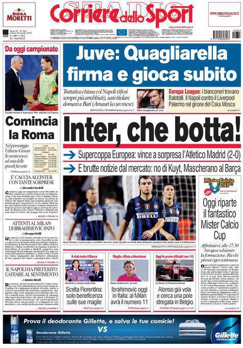 ROMA – Ieri sera l’Atletico Madrid ha dato una sconfitta sia sul campo ma anche morale a Rafa Benitez ed ai suoi giocatori, infatti i Colchoneros hanno battuto 2 a 0 nella finale di Montecarlo i neroazzurri aggiudicandosi la Supercoppa Europea grazie ai gol do Reyes e del Kun Aguero. Arriva quindi la prima delusione ufficiale dopo tanto tempo per l’Inter ma soprattutto per la nuova era di Benitez alla guida dei neroazzurri.