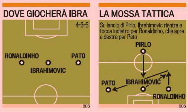 Calcio/ MILANO – In attesa della “Sfilata” a San Siro, la Gazzetta dello Sport da la possibile posizione che Zlatan Ibrahimovic avrà nell’attacco del Milan. Ecco l’immagine: