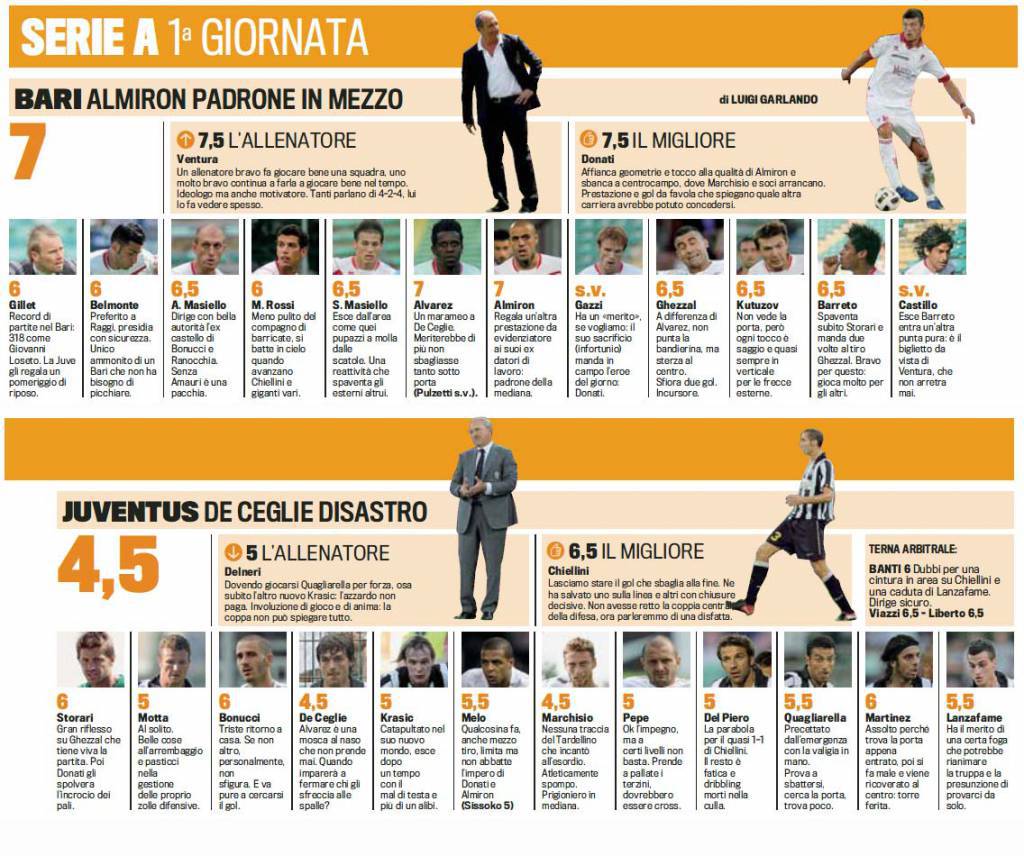 BARI – Pesanti voti per i bianconeri, puniti da un Bari trepitoso organizzato sempre alla perfezione da Ventura. Per Delneri la strada è in salita.