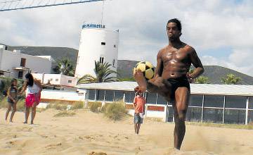 CALCIO MILAN / MILANO – Uno dei punti deboli di Ronaldinho è sempre stata la forma fisica, con il campione brasiliano che raramente si è presentato in ritiro in perfetta forma. Quest’anno però il numero 80 rossonero sembra essere già al top come dimostrato contro il Lecce e come mostra questa foto scattata sulla spiaggia mentre l’ex barcellona palleggia con un pallone: