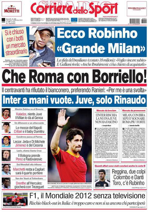 ROMA – Grande acquisto della Roma che sul filo di lana ha bruciato la Juventus nella corsa al bomber rossonero. Borriello si giocherà il posto con Totti, Vucinic e Adriano.