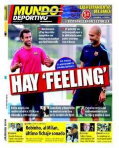 Mundo Deportivo: C’è feeling 01/09/2010 di admin BARCELLONA – Subito sintonia fra Guardiola e il nuovo acquisto Mascherano, chiamato a far fare il salto di qualità ad un centrocampo già stellare. Daniele Berrone – www.calciomercatonews.com