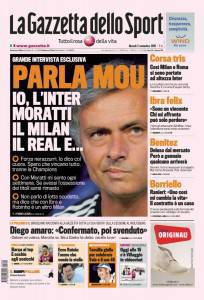 Sulla Gazzetta dello Sport intervista esclusiva all’ex tecnico dell’Inter Josè Mourinho, attuale allenatore del Real Madrid che ha parlato della sua ex squadra, del Milan di Ibrahimovic e Robinho e della nuova avventura sulla panchina delle “merengues”.