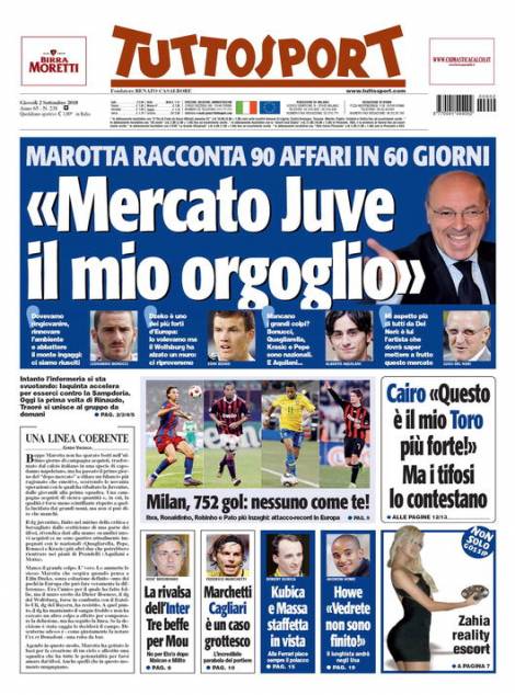 Su Tuttosport intervista esclusiva a Beppe Marotta, direttore sportivo della Juventus che ha parlato del mercato dei bianconeri con ben 90 affari in 60 giorni di calciomercato. Un grande lavoro quello dell’ex dirigente della Sampdoria.