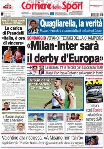 Sul Corriere dello Sport si parla del derby milanese tra Milan ed Inter che secondo i tecnici impegnati nella prossima Champions League sono le due favorite alla vittoria finale nella massima manifestazione continentale. Tanti voti per il nuovo Milan di Ibrahimovic e Robinho.