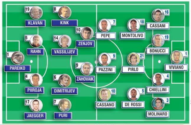 TALLINN (Estonia) – Questa sera l’Italia di Cesare Prandelli debutterà nel girone qualificazione ai prossimi Europei del 2012 giocando contro l’Estonia. Il nuovo c.t. della Nazionale italiana opterà per il tridente d’attacco formato da Pepe-Pazzini-Cassano, mentre la novità più importante riguarderà il portiere. Il ballottaggio tra Sirigu e Viviano è stato vinto da quest’ultimo. Ecco la formazione secondo il Corriere dello Sport.