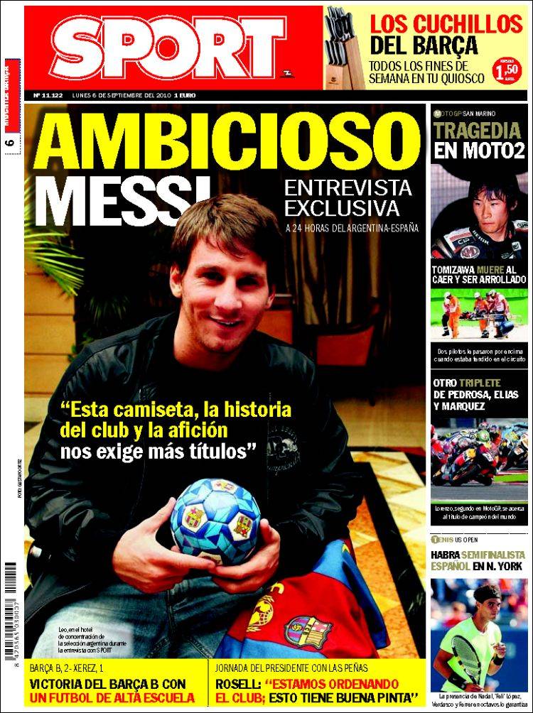 Anche il quotidiano catalano Sport ha intervistato in esclusiva il campione del Barcellona Lionel Messi, stella dell’Argentina che domani affronterà al Monumental la Spagna Campione del Mondo, in un match spettacolare. Il campione argentino promette battaglia.