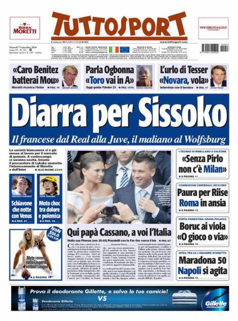 Sul quotidiano torinese Tuttosport si parla del calciomercato della Juventus che ha nel mirino il centrocampista francese del Real Madrid Diarra. Sul fronte cessioni si registra l’interessamento del Wolfsburg per Sissoko.