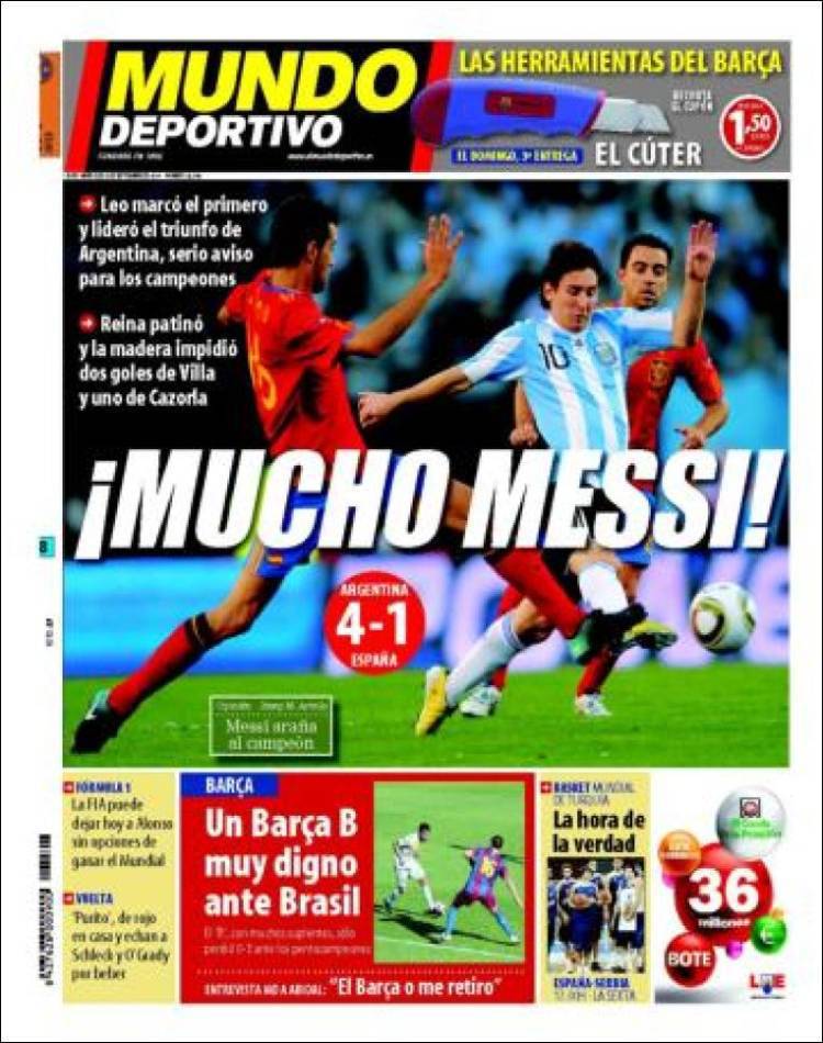 Anche il quotidiano catalano Mundo Deportivo esalta la prova di Lionel Messi con la maglia dell’Argentina nell’amichevole vinta dai sudamericani per quattro a uno contro la Spagna Campione del Mondo.