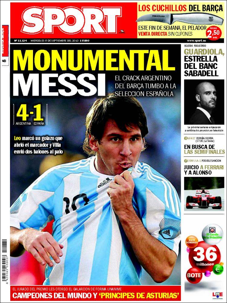 Anche l’altro quotidiano catalano esalta la prova di Lionel Messi nell’amichevole tra Argentina e Spagna vinta dai sudamericani per quattro ad uno con la stella del Barcellona in grande evidenza ed autore di un grandissimo gol.