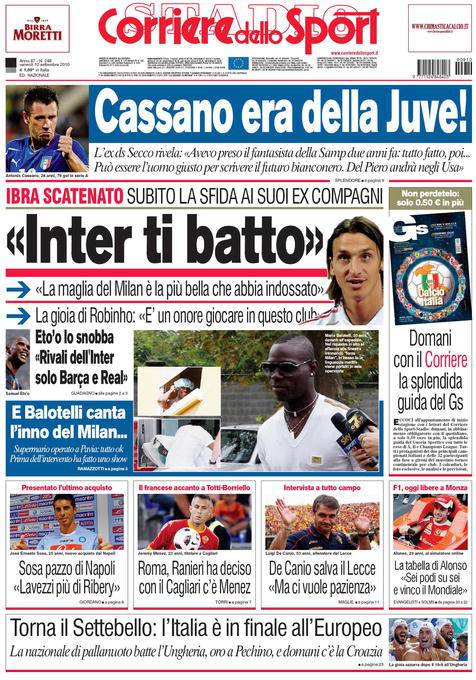 Sul Corriere dello Sport spazio alle dichiarazioni rilasciate ieri da Zlatan Ibrahimovic durante la sua presentazione ufficiale alla stampa. Lo svedese ha dichiarato che il Milan è più forte dell’Inter promettendo ai tifosi rossoneri un anno di successi.