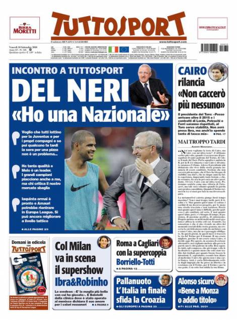 Sul quotidiano Tuttosport intervista esclusiva al tecnico della Juventus Delneri che ha parlato della rosa bianconera dicendosi soddisfatto da tutti i punti di vista ed ha elogiato il brasiliano Felipe Melo, un leader secondo l’ex allenatore della Sampdoria.