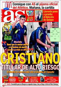 Anche l’altro quotidiano spagnolo As parla di Cristiano Ronaldo che questa sera torna titolare in campionato contro l’Osasuna. Il portoghese ritorna in campo dopo l’infortunio e per molti è un rischio per una possibile ricaduta.
