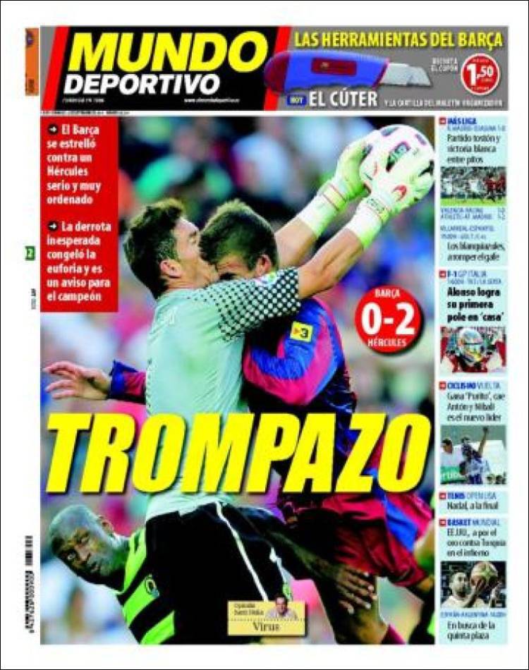 BARCELLONA (Spagna) – Clamoroso colpo dell’Hercules, squadra neopromossa in prima divisione spagnola che ieri sera ha sconfitto il Barcellona al Camp Nou per 2 a 0. L’Hercules, lo ricordiamo è la squadra che ha ingaggiato poco più di due settimane fa l’attaccante francese David Trezeguet, sembra esser partita col piede giusto l’avventura spagnola per Trezegol e la sua nuova squadra.
