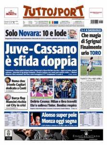 TORINO – Oggi allo stadio Olimpico di Torino andrà di scena una partita molto interessante tra Juventus e Sampdoria ed il grande ospite per i bianconeri sarà Antonio Cassano che è seguito con grande interesse da Marotta e Del Neri. Nella giornata di ieri intanto, disastro per il Milan che perde 2 a 0 contro il Cesena e sconfitta clamorosa per 5 a 1 per la Roma. L’unica a salvarsi è l’Inter che vince se pur soffrendo contro l’Udinese per 2 a 1.
